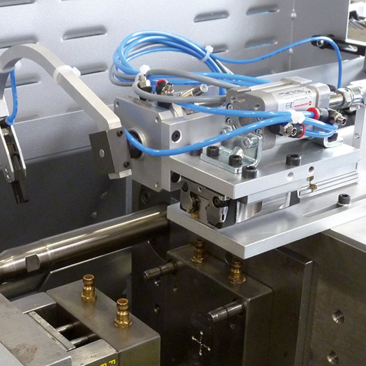 The BOY XS E combines extremely compact design with high precision. With 100 kN clamping force on just 0.87 m², it delivers innovative solutions for micro injection moulding and sprue-free small parts production. The freely protruding two-platen clamping unit with diagonal tie bars provides excellent access to the plasticising unit, mould chamber, and ejector — ideal for automation. Optional special clamping plates are available for micro moulds from leading standard parts manufacturers.