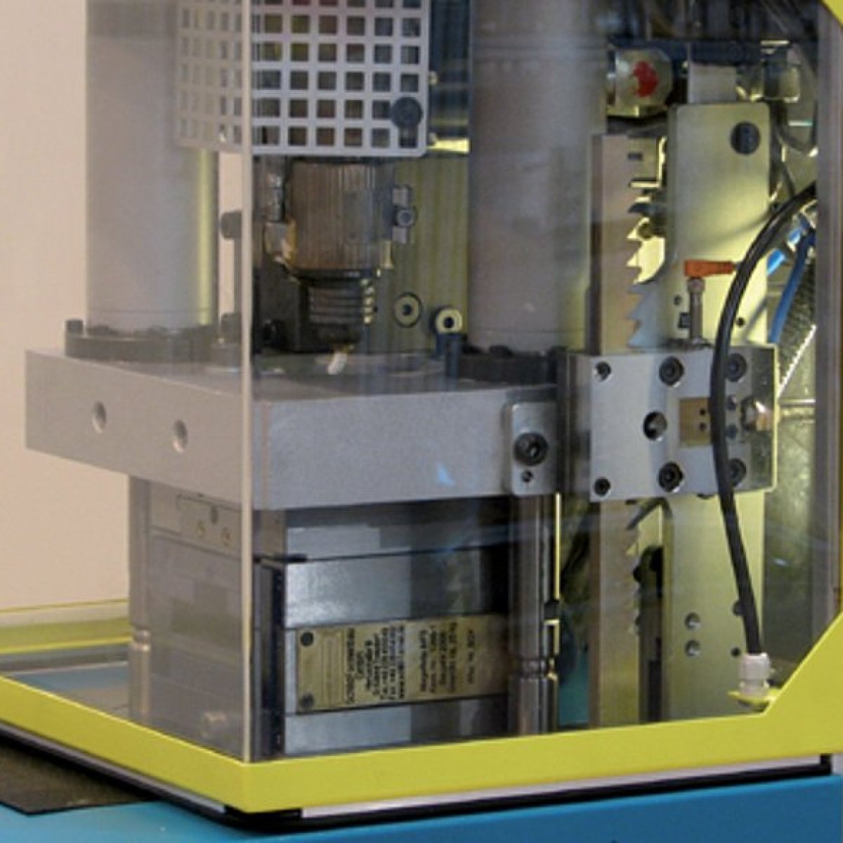 The BOY XS V is a compact vertical injection moulding machine featuring a vertical injection and clamping system. Ideal for overmoulding metal parts, semi-finished components, or cable ends, its fixed lower clamping unit prevents slippage during mould closure — essential for high-precision injection moulding.